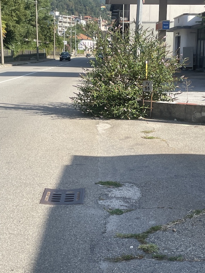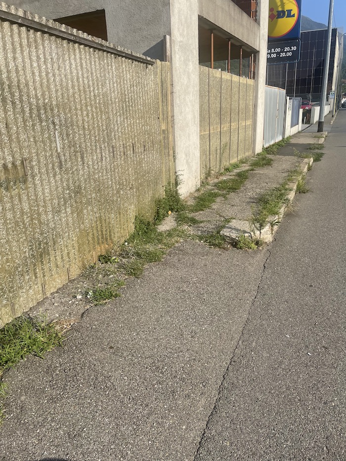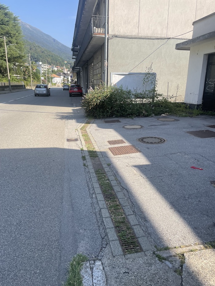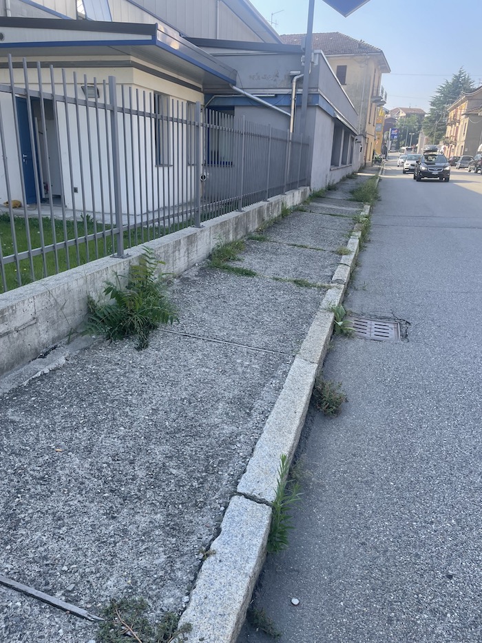 OMEGNA - 23-8-2023 -- Criticità estetiche, così Luigi Songa (VCO Tricolore) definisce le erbacce che si stanno appropriando di muri e marciapiedi in piazzale Lodi e in via IV Novembre, a Omegna.