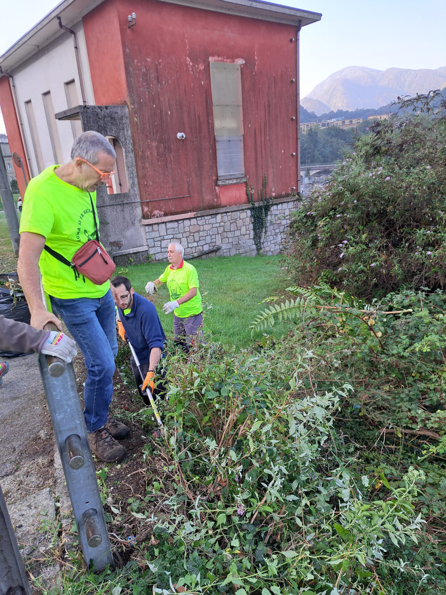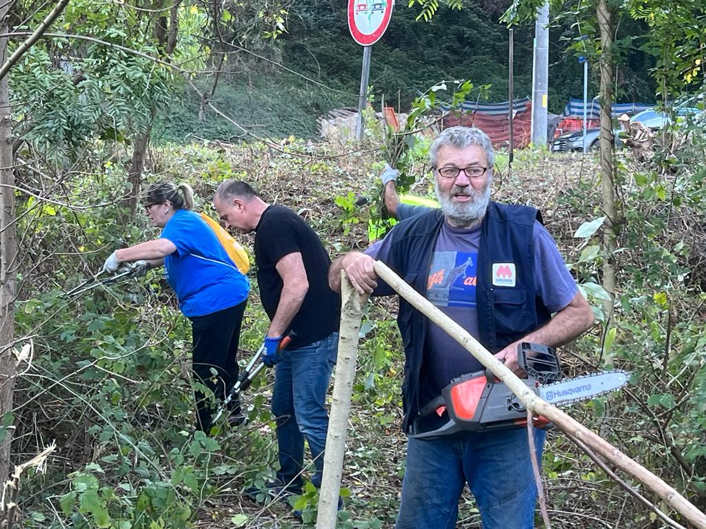 Divisi in più squadre, si è dato gas a decespugliatori e motoseghe tagliando erba, cespugli e ramaglia lungo il Rio Bertogna, viuzze del quartiere e il ponte napoleonico(almeno così si dice), ma che è bello chiamarlo “Ponte Tonino” in ricordo del compianto presidente del Quartiere che tanto ci teneva a dargli nuova luce.