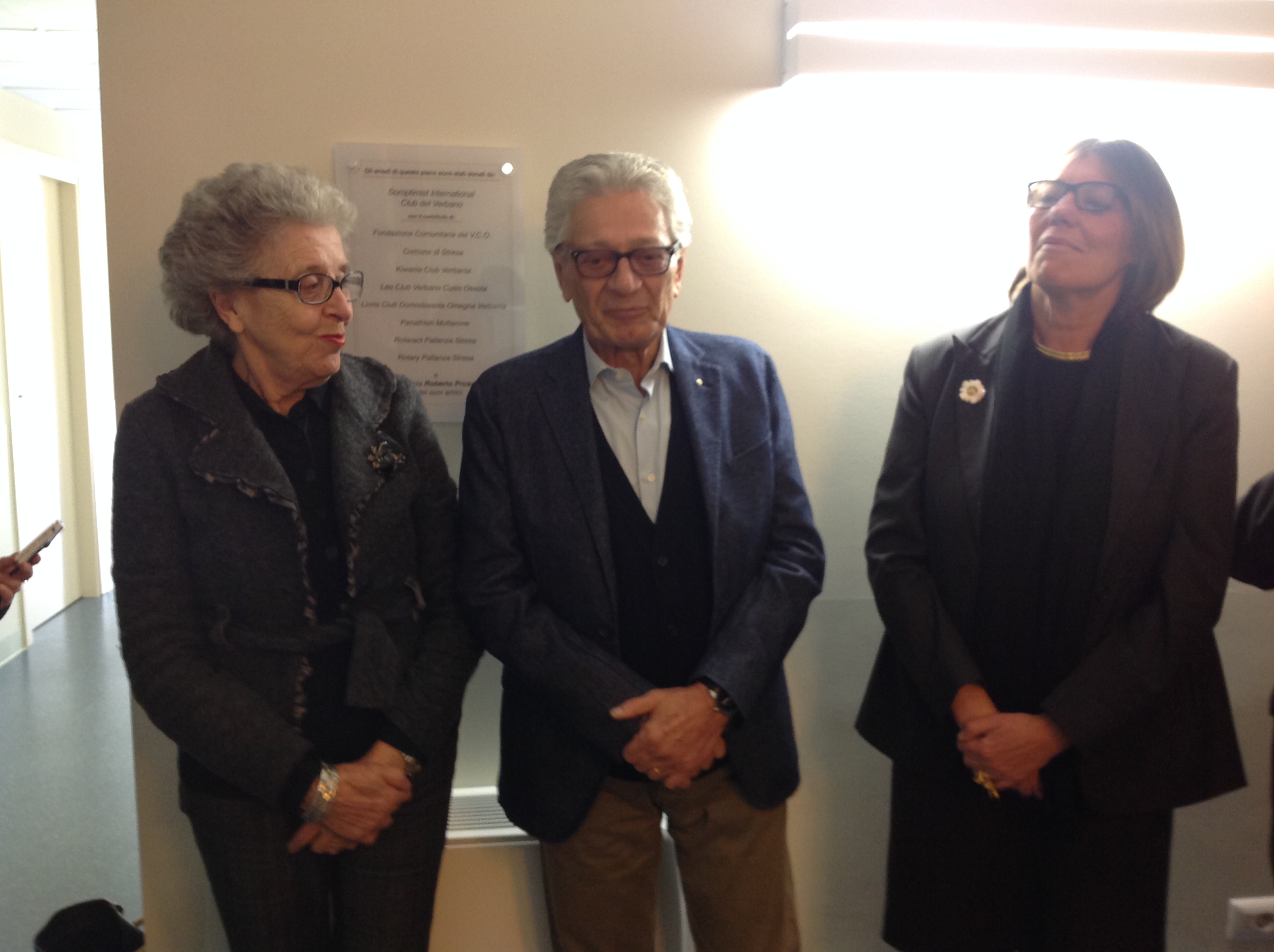 Erano presenti all'inaugurazione odierna, oltre a Paola Gambetti Gramatica (guarda l'intervista), presidente Soroptimist Club del Verbano e una delegazione di "soroptimiste", Ivan Guarducci (guarda l'intervista) presidente della Fondazione comunitaria del Vco, Roberto Cinquini vicepresidente dell'associazione Centri del Vco in sostituzione del presidente Giuseppe Moroni, Rino Porini del Lions, Silvio Beltrami presidente del Kiwanis, Anna Di Titta vicesindaco di Gravellona Toce e il presidente del Panathlon Mottarone Camillo Paffoni.