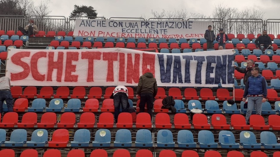 La giornata era iniziata con una pesante contestazione da parte dei Testi Mati, il gruppo ultras che segue il Gozzano, che ha esposto eloquenti striscioni contro il tecnico dei cusiani Massimiliano Schettino.