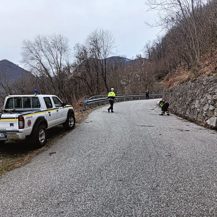 QUARNA SOPRA - 19-3-2024 -- La squadra di Protezione Civile di Quarna, in collaborazione con il Coordinamento provinciale, con la squadra di Omegna, con diversi volontari, amministratori e con i sindaci delle Quarne, ha provveduto a pulire le cunette lungo tutta la Strada Provinciale 51 delle Quarne.