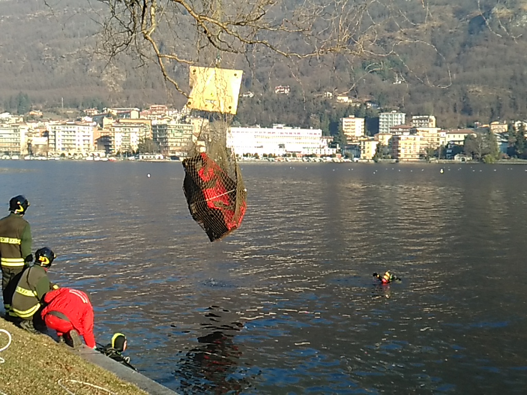 pomeriggio le operazioni di recupero della carcassa di un autoveicolo nel lago d’Orta a pochi metri dall’ex discoteca Kelly, nel quartiere Bagnella, in via lungo lago Gramsci, ad una decina di metri di profondità. Si tratta di una mini car Sulky, prodotta negli anni 80 di colore rosso. A bordo pare vi siano dei resti di ossa umane ma al momento non ci sono notizie precise, nemmeno sulla loro provenienza. L’auto era di proprietà di un uomo di Gozzano, classe 1908, deceduto una decina di anni fa. Ancora non è chiaro come mai il mezzo sia finito in acqua e chi vi fosse stato a bordo. Molte le voci rincorse durante la mattinata, da chi si avvicinava per capire cosa stesse succedendo. Si racconta di due uomini, amici, a bordo di un simile mezzo, caduti nel lago in anni in cui non esisteva ancora l’odierna passeggiata sul lago lastricata con sanpietrini e quindi l’accesso al lago avveniva semplicemente uscendo di strada, scendendo dalla scarpata. Ad avvistare il mezzo sono stati ieri, sabato 7 gennaio, tre sommozzatori dell’associazione sub Verbania che nel primo pomeriggio hanno deciso di fare un’immersione nel lago, in modo amatoriale. Un giro di una mezz’ora in direzione nord, verso il golfo di Omegna. Un percorso che abitualmente viene seguito. Poi, al ritorno dal giro, prima di uscire dall’acqua, hanno notato il mezzo sommerso con tanto di targa spostato verso sud, non lontano dalla curva in cui si trova la discoteca Kelly. Subito hanno allertato i Carabinieri di Verbania che hanno organizzato il recupero del mezzo questa mattina intorno alle 9. Sul posto c’erano oltre gli uomini della stazione di Verbania e Omegna, i vigili del fuoco di Omegna, il magistrato Sveva de Liguoro e il procuratore capo Olimpia Bossi di Verbania. Nelle fredde acque del lago si sono immersi i sommozzatori dei vigili del Fuoco di Torino, giunti appositamente alle 10 dal capoluogo piemontese. Mentre i colleghi di Omegna tagliavano alcuni rami delle piante presenti sulla passeggiata veniva posizionato il braccio della Gru in modo da permettere il recupero nel lago da parte di due vigili sommozzatori. Dopo una prima immersione è stato possibile iniziare a riportare a riva, alle 12.30 circa, solo le ruote del mezzo. Per completare il recupero è stato necessaria una seconda immersione nel primo pomeriggio con l’ausilio di una rete che ha permesso di raccogliere la scocca ed il suo contenuto. I resti sono stati portati presso il deposito del carro attrezzi incaricato, nella zona industriale di Gravellona Toce. Domani verrà effettuato l’esame del dna sulle ossa ritrovate all’interno del mezzo. Vicino alla carcassa è stata rinvenuto anche un portafogli contente un documento di identità che però nulla hanno a che fare con il proprietario del mezzo, come confermato dai Carabinieri presenti in loco.