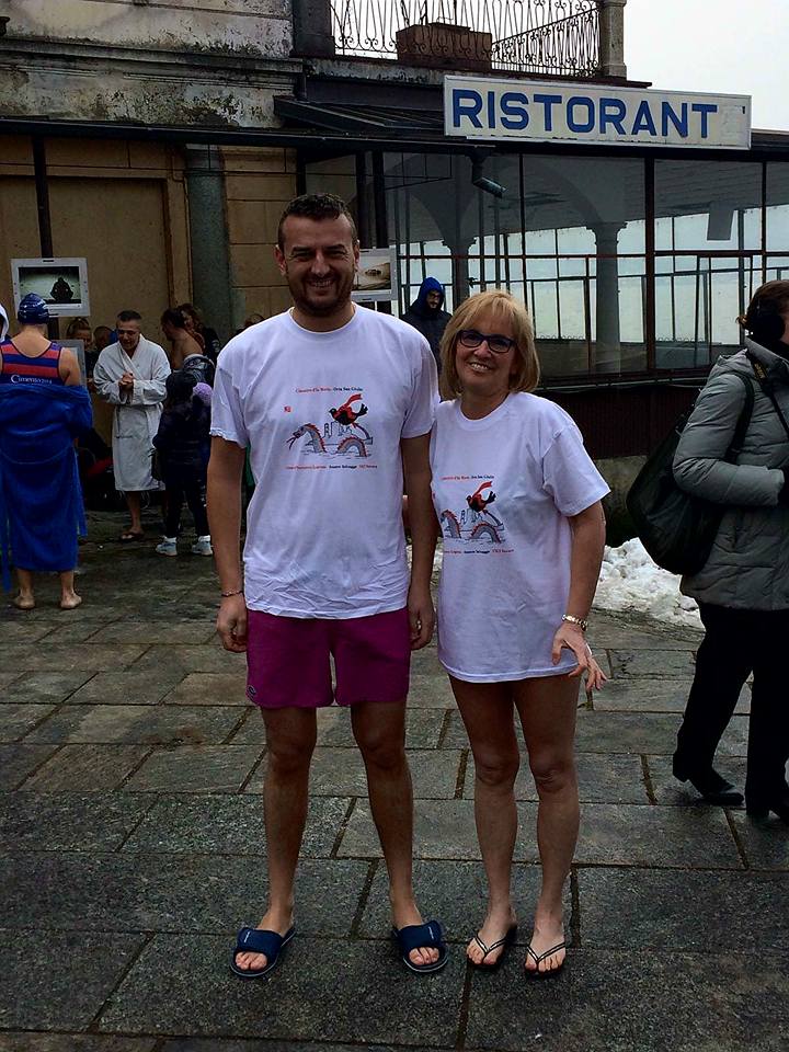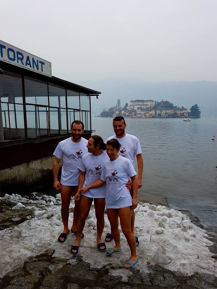 ORTA SAN GIULIO- 28.01.2017- Alta la partecipazione questa mattina, sabato 28 gennaio, per l’ottava edizione del “Cimento d’la merla”. Una sessantina di persone in costume da bagno, per lo più uomini adulti ma anche donne e qualche bambino, si sono presentate in piazza Motta, dal lato dove sorge l’ex Albergo Orta e presso il pontile, pronte per “assaggiare” l’acqua del lago d’Orta. Alle 11, come stabilito, si sono tuffate nello specchio d’acqua del Cusio che aveva una temperatura di 5 gradi, come confermata dal primo cittadino Giorgio Angeleri che, contrariamente alle scorse edizioni, in questa occasione non si è unito ai bagnanti limitandosi a prendere la temperatura. Presenti anche i subacquei di Sub Novara Laghi che hanno vigilato i cimentisti che si divertivano in acqua e cinque atleti dell’International Ice Swimmer Association Italy che poi si sono fatti “un giretto” verso l’isola di San Giulio (15 minuti per arrivare sino all’isola e altrettanti per ritornare al punto di partenza). Per tutti, all’uscita dalle acque, oltre all’accappatoio e alle ciabatte c’era una bella t-shirt ricordo e poi bevande calde con torte e biscotti preparati e offerti dal centro sportivo e dal bar ristorante pizzeria “Il Pozzo” di Orta. Il cimento d’la Merla è nato a Omegna otto anni or sono ma poi nel tempo si è trasferito a sud del lago. Infatti da tre anni il tuffo nelle acque avviene dalla riva di Orta. E’ organizzato dall’associazione Anatre Selvagge in collaborazione con Uici (Unione italiana dei Ciechi e ipovedenti onlus) di Novara e dall’associazione turistica Pro loco di Orta San Giulio. In questa edizione accanto al bagno nel lago è stata organizzata una cena speciale. Si tratta di una “Cena al buio”, un’esperienza sensoriale organizzata da Cristina Scazzosi dell’Uici presso l’oratorio di Orta, questa sera, alle 20. L’incasso della serata sarà devoluto alle persone colpite dal terremoto in centro Italia. (l.p.)