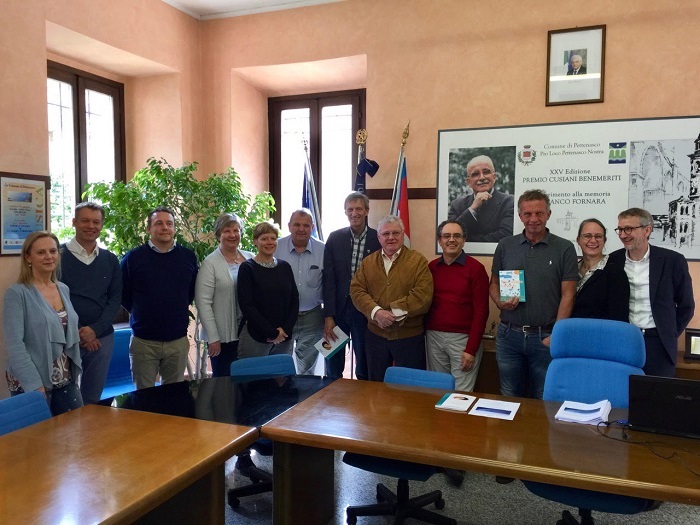 PETTENASCO - 11-05-2017 - Un incontro fra idee e culture di gestione del territorio molto significativo, quello svoltosi a Pettenasco mercoledì 10 maggio nel pomeriggio tra la delegazione di amministratori locali, tecnici ed imprenditori di Vajle, comune situato nella parte sud-est dello Jutland nel sud della Danimarca, arrivati sul lago d’Orta, grazie ad uno scambio di buone pratiche attivato con il partner italiano “Consorzio Scuola Comunità Impresa di Novara”, e l’ecomuseo del lago d’Orta e Mottarone. Ad aprire lo scambio culturale è stato il sindaco Franco Sartirani, ripercorrendo la storia economica del paese e come esso sempre più si stia avviando a diventare un comune turistico. La parola è poi passata al direttore di Ecomuseo, Andrea Del Duca, che ha ripercorso la nascita dell’associazione e come essa durante i suoi 20 anni di attività ha saputo consolidare e promuovere una rete di attrattori culturali, collegandoli attraverso i famosi sentieri percorsi attraverso l’iniziativa Girolago. Non sono mancati interventi riguardanti la sostenibilità ambientale e come essa si possa trasformare in sostenibilità economica attraverso la voce di altri attori del territorio tra cui Lidia Robba, presidente dell’Associazione B&B “Case Piemontesi”, Antonio Fallati, rappresentante l’agriturismo “L’agrifoglio”, Samuel Piana, titolare dell’agenzia di marketing territoriale Landexplorer e i giornalisti Luisella Mazzetti e Vincenzo Amato. Molte sono state le domande poste poiché le differenze tra gli stati sono evidenti in quanto la Danimarca ha un assetto politico, sociale ed economico diverso. A conclusione dell’incontro il capo delegazione Niels Clemmensen, ha regalato un portachiavi al direttore Del Duca a suggello di questo momento augurando future collaborazioni. Ultimo atto della giornata, prima della ripartenza, è stato la foto di rito sul lago con vista sull’isola di San Giulio.