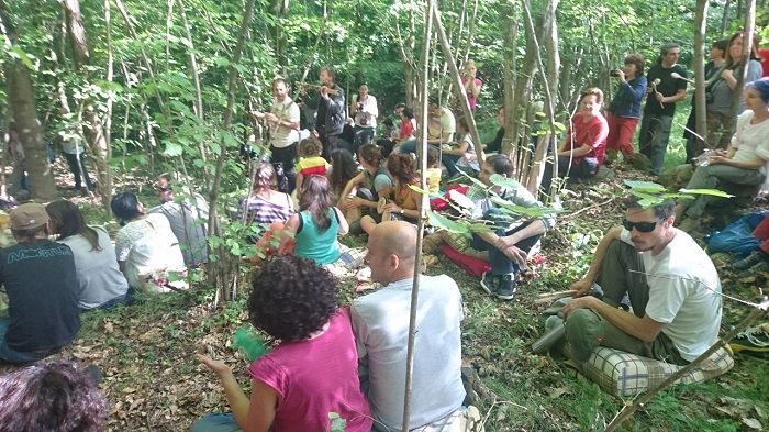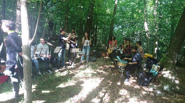 dove l’uomo entra in contatto con la natura, rendendosi conto che ne è parte integrante, finendo per essere un tutt’uno con essa e da questo presupposto iniziare un viaggio di indagine, come vuole il titolo dell’iniziativa di residenza artistica denominato “La guerra dentro e fiori” organizzato dall’associazione “Artzo.lab” e l’Accademia di Brera nei boschi di Arzo a Casale Corte Cerro, la scorsa domenica 21 maggio. Il tema affrontato che vede la sua esplicazione attraverso il rapporto tra arte contemporanea e l’ambiente, prende spunto dal testo filosofico di Sun Zhu “L’arte della Guerra” per poi essere trasformato e rielaborato, come fanno spesso gli artisti, al fine di offrire un nuovo e differente punto di vista. Durante la giornata iniziata con l’inaugurazione della mostra a cui ha partecipato anche il sindaco, Grazia Richetti, diversi artisti e studenti dell’Accademia, coordinati dal docente Alfred Locatelli, hanno lavorato e proposto le proprie opere d’arte pensate specificatamente per il bosco scelto per la performance. Quest’anno la scelta di aver commissionato un’opera permanente all’artista Diego Finassi, vuole essere anche il primo step per la realizzazione di un parco arte-natura permanente e visitabile tutto l’anno. Alle 17, all’interno del bosco, si è tenuto anche il concerto degli studenti del liceo musicale “Piero Gobetti” di Omegna questa volta accompagnati dal pubblico, invitato per l’occasione a portare i propri strumenti musicali o a usare anche materiali presenti nel bosco come “primordiali” percussioni unendosi così alla performance sonora, ispirata alla composizione di Frederic Rezwsky denominata “Les Mountons de Panurge”.