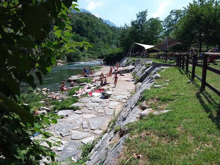 GRAVELLONA TOCE- 08- 07- 2017- Per sfuggire al caldo torrido e all’alta temperatura di questi giorni molti gravellonesi anziani, adulti, giovani, bambini ma, anche tante mamme straniere, si sono riversati, specie nel pomeriggio, nel parco verde dell’Isolone, lungo il torrente Strona. Il parco giochi per i bambini con gli alberi e la spiaggetta dello Strona, è il luogo più adatto per i gravellonesi, vista l’alta temperatura, per sfuggire al caldo eccessivo degli scorsi i giorni che, in alcune ore delle giornata hanno raggiunto i 34/36 gradi e trascorrere alcune ore al fresco con gli amici sotto i grandi alberi del parco Isolone. Diverse decine di adulti invece, soprattutto, donne e ragazze, hanno colto l’occasione per prendere la tintarella al sole, mentre i ragazzi si divertivano a bagnarsi e tuffarsi dalla roccia della Lanca Bavagnoli, nelle acque fresche del torrente gravellonese. La riapertura del chioschetto del parco Isolone, rimasto per due anni chiuso, offre ai cittadini un’opportunità nuova dove poter trascorrere e godere uno dei più bei luoghi e scorci di Gravellona Toce. I ragazzi da quando è stato riaperto il chiosco, sono tornati a giocare nel campetto di beach volley e alle famiglie tornare a fare dei picnic e le grigliate. Inoltre vi è la possibilità per i fruitori del parco, di acquistare gelati, bibite, caffè e gustare anche degli aperitivi. Nei fine settimina si possono trascorrere le serate ascoltando musica e gustare le grigliate di carne e pesce preparate dai gestori del piccolo bar, sotto il nuovo tendone del parco, sulla riva del torrente Strona. (G.P.C.)