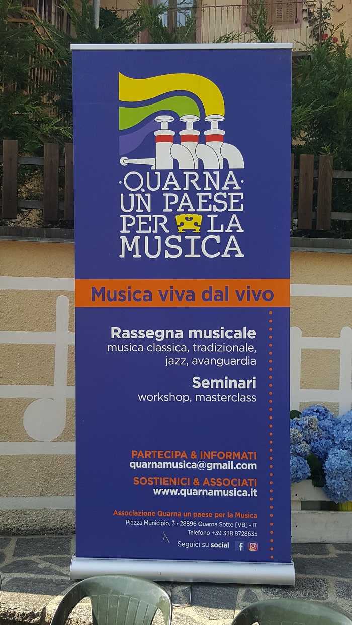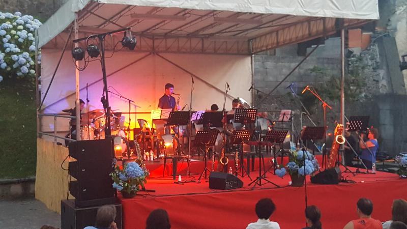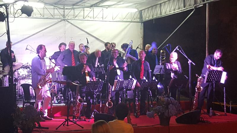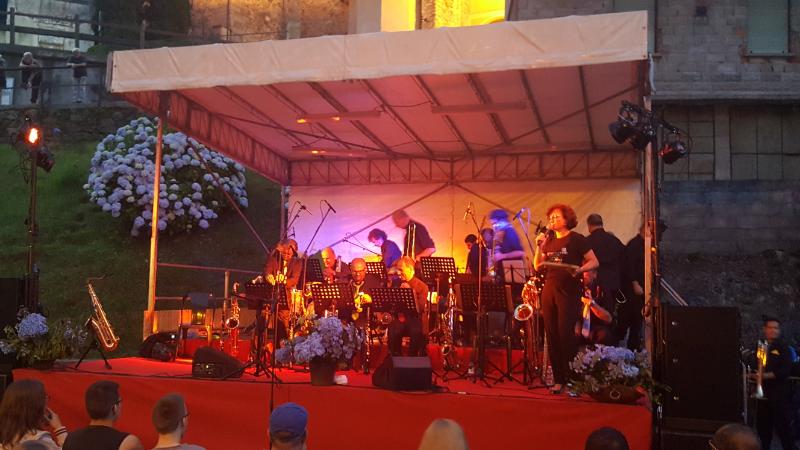 serata di ieri, venerdì 7, in piazza Fornaca. Sul palco delle feste sono saliti i protagonisti della musica nazionale e internazionale trasformando il paese in un unico grande teatro. I giovani vincitori del premio Brusoni 2016 Simone Locarni e Gianluca Ciani, accompagnati da Daniele Delfino e Luca Magnani, hanno aperto la serata a cui ha fatto seguito il concerto dell’Accademia Big Bang con ospite speciale: Chris Collins. Tra i brani applauditi “Calipso for Quarna”, scritta da Collins dopo un suo soggiorno all’alpe Camasca (sopra l’abitato di Quarna Sotto), alcuni anni fa, e “Guidati da un angelo” scritta volando verso Quarna ricordando Maria Rita Nicolazzi, scomparsa pochi mesi fa, moglie di Roberto Zolla, titolare della ditta di strumenti a fiato “Rampone & Cazzani” con i figli Claudio e Simone, con cui Collins ha un forte legame e di cui conserva un bellissimo ricordo. “ E’stata lei la mia prima guida a Quarna, me l’ha fatta scoprire”- ha detto il musicista. Collins ha poi proseguito la serata interpretando i pezzi composti dai suoi studenti con la “Big Band”. A fare da cornice alla serata le patate alla cuchela, piatto tipico del paese, servito durante la manifestazione a mo’ di street food, a cui si poteva accompagnare le bevande offerte dal servizio bar, attivato per l’occasione.(L.P. e E.C.).