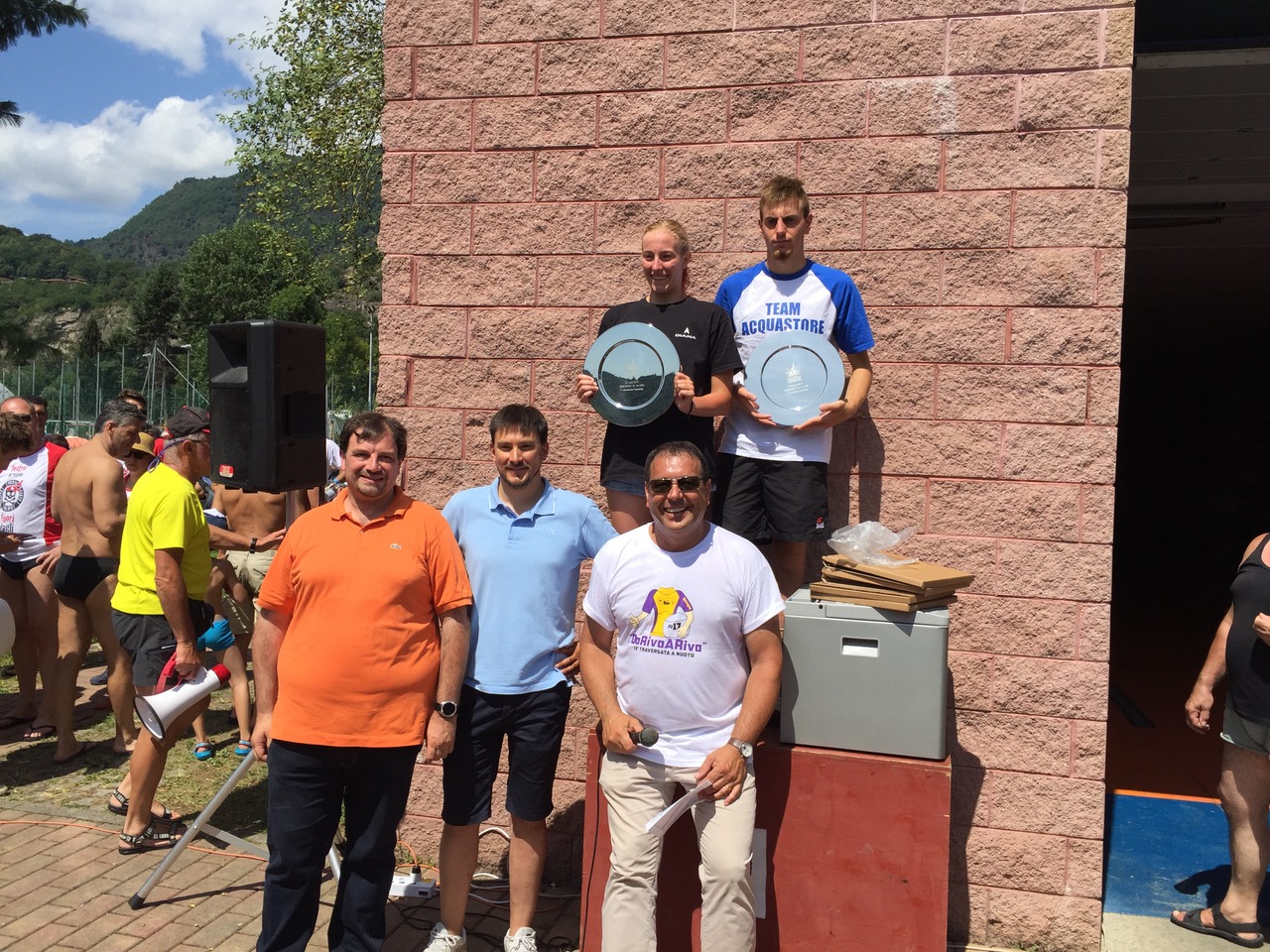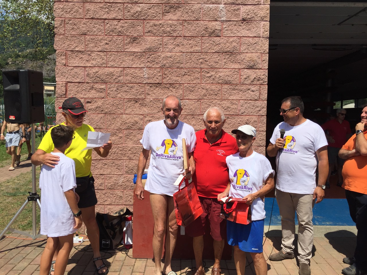 OMEGNA - 23-07-2017 - Grande giornata di sport non agonistico in una rovente mattinata estiva. Ben 415 partecipanti si sono tuffati nel lago d’Orta per la tredicesima edizione dell’iniziativa “Da Riva a Riva” organizzata dalla Canottieri di Omegna in collaborazione con l’associazione “Missione Possibile”. Tanti i volontari che hanno aiutato nell’organizzazione dal gruppo: dai sub, alla pattuglia dei Carabinieri per bloccare eventuali motoscafi in transito, senza dimenticare i sommozzatori al fine di avere la massima sicurezza possibile. Ben 1700 i chilometri percorsi dagli iscritti al tracciato lungo, con partenza e ritorno alla canottieri mentre 850 sono stati i chilometri affrontati dai partecipanti che hanno percorso il tratto da Borca alla canottieri. Il primo nuotatore a raggiungere il traguardo del percorso lungo è stato Lavazza Lorenzo con il tempo di 19 minuti e 44 secondi, mentre la prima atleta della stessa percorrenza è stata Lara Gherardini con 20 minuti e 20 secondi. Ad aggiudicarsi il tracciato breve sono stati rispettivamente: Muletti Manuel con il tempo di 9 minuti e 42 secondi e Alice Farina con 11 minuti e 36 secondi. Gli atleti sono stati premiati da Mattia Corbetta, assessore al turismo di Omegna e Francesco Persone assessore allo sport. Sono stati assegnati anche alcuni premi speciali in particolare: ai nuotatori più anziani a cui sono stati regalati due orologi Alessi, in ricordo di Ettore Alessi, che sono stati consegnati a Ramella Agostino di anni 76 e Bois Gabriella di anni 74. Anche ai più giovani partecipanti: Russo Lorenzo e Cazzola Arianna, entrambi di 11 anni, hanno ricevuto ciascuno un orologio Alessi. Premi anche per Rosato Antonio, giunto ad Omegna da Ainrig, Germania, e per i gruppi più numerosi: Vimercate Nuoto con 39 atleti, Rari Nantes da Crema con 35 atleti ed il Torino Nuoto con 30.