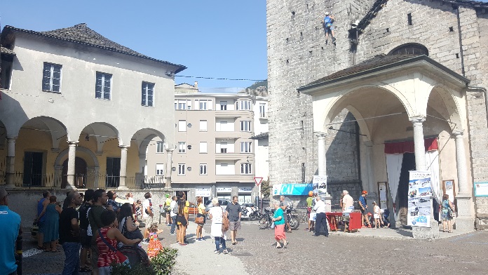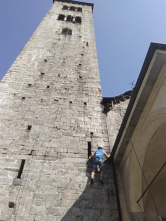 pomeriggio, domenica 20 agosto, la tradizionale scalata del campanile della collegiata di Sant’Ambrogio. Giunta alla terza edizione la manifestazione è sempre gradita nella settimana dei festeggiamenti di San Vito e richiama appassionati scalatori, tra cui molti ragazzi ma anche bambini. Il pomeriggio è organizzato dal Cai di Omegna ed ha visto la partecipazione di Massimo Medina, guida alpina, e di alcuni componenti ed istruttori del Cai tra cui Luca Francisco che hanno assistito i “climber”. Sotto il sagrato della chiesa, luogo della partenza degli scalatori, è stato anche possibile gustare le focaccine della pasticceria omegnese “Il Campanile”. (E.C.)