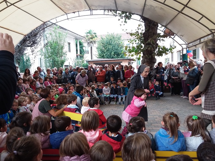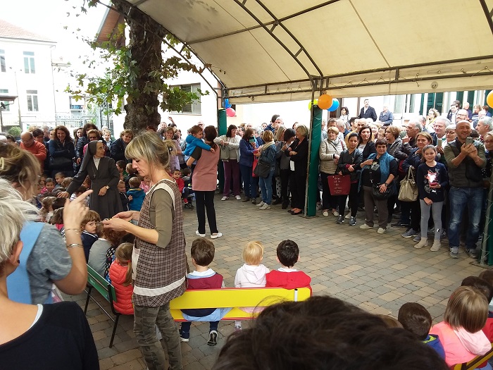 GRAVELLONA TOCE- 04.10.2017- Come oramai da tradizione, nel pomeriggio di lunedì 2 ottobre, presso l’asilo “Monumento ai caduti” di Gravellona Toce, bambine e bambini, maestre e suore, in occasione della festa dei nonni, hanno organizzato un piccolo e simpatico momento di intrattenimento con canti e musiche. Prima della tradizionale uscita dall’asilo alle 15.45, tutti i piccoli, bambini e bambine insieme alle maestre e suore, hanno accolto nel cortile l’arrivo dei nonni, recitando alcune canzoncine per ringraziarli del loro affetto, in quanto sempre presenti e vicini in ogni momento e occasione della loro crescita. La direttrice dell’asilo, ha, con poche parole, ricordato ai bambini e alle famiglie quanto sia sempre più preziosa la presenza dei nonni nella vita dei bambini e degli adolescenti. La simpatica festicciola si è conclusa con un piccolo rinfresco con bibite e dolci.