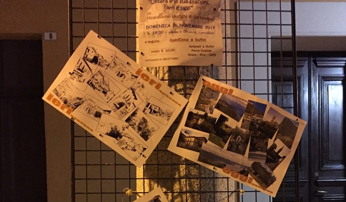 CESARA -28-11-2017 - Domenica 26 novembre, alle ore 18.00 presso il circolo operaio “G. Lancellotti” e centro ricreativo “Falda” si è svolto l’evento “Cesara e le sue frazioni ieri e oggi”. L’iniziativa organizzata patrocinata dall’amministrazione comunale e sviluppata in collaborazione con il progetto “accendiamo la memoria” ed il fotocineclub “Lo Specchio del lago”, ha avuto come obiettivo il condividere scorci e memorie del piccolo comune. Fabio Valeggia, ideatore del più grande archivio iconografico del Cusio, ha introdotto le letture di articoli, tratti dal giornale “L’amico edito ad inizio 1900, di alcuni importanti fatti come la festa di Sant’Apro e la nascita dell’Asilo infantile “Monsignor Garga”, avvenuti in un periodo storico contrassegnato da grandi avvenimenti come le GrandManovre del Sempione, una particolare esercitazione militare che portò sul territorio quasi ottantacinque mila soldati e l’arrivo della corrente elettrica. A conclusione delle lettura è stato presentato un video che ha mostrato l’evoluzione del borgo e delle sue frazioni con la particolarità di aver ripreso lo stesso identico scorcio in maniera da documentare nella maniera più fedele possibile i cambiamenti avvenuti, come ha ben spiegato il presidente del fotocineclub, Antonio Fallati. A conclusione della serata si è lanciata l’idea di realizzare una mostra fotografica, il cui focus sarà l’abitante di Cesara, mettendo così al centro la comunità. Questo progetto, da sviluppare nei prossimi mesi, è il continuo impegno nella valorizzazione della cultura e delle tradizioni del paese iniziato due anni fa con la realizzazione di un video e continuato con l’apertura di un punto lettura nella frazione di Grassona.