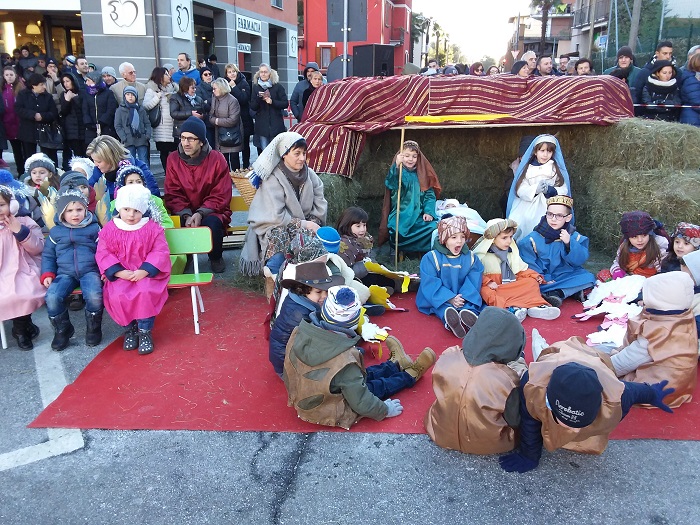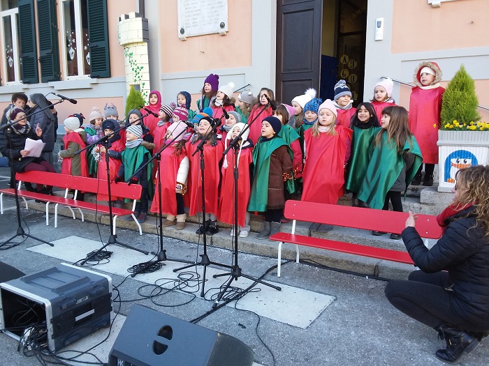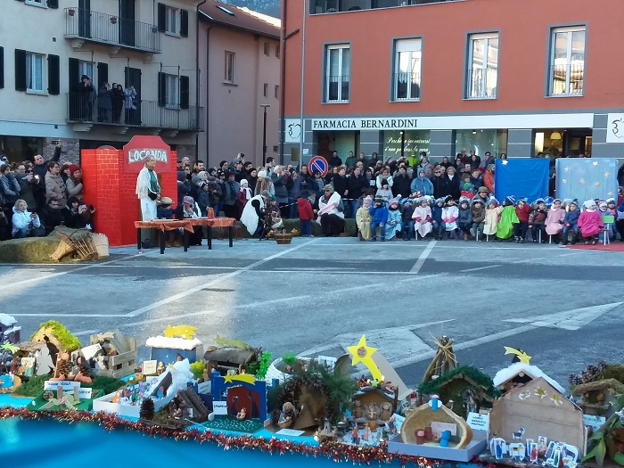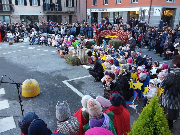 GRAVELLONA TOCE- 20-12-2017- Si è svolta domenica 17 dicembre, in piazza Vittorio Veneto, la seconda rappresentazione della “Natività”, con i bambini, le maestre, le suore dell’asilo “Monumento ai caduti di Gravellona Toce” e alcuni genitori come figuranti. Malgrado la presenza del vento, lo spettacolo sulla “Natività” ha regalato forti emozioni al foltissimo pubblico, costituito da genitori e nonni, assiepato per assistere allo spettacolo dei loro bambini. I bambini, guidati dalle loro maestre e suore, grazie alla loro tenerezza e bravura, ancora una volta sono stati i protagonisti dello spettacolo che evoca la nascita del Bambin Gesù. A rendere ancora una volta emozionante la rappresentazione della “Natività”, sono stati i canti intonati e i balli dei piccoli, la coreografia con i vecchi mestieri: la locanda e il falegname con i figuranti, la stella e grotta, i costumi di Maria e Giuseppe, dei Re Magi e pastori, che hanno evocato la nascita del Bambinello. Ad arricchire quest’anno la rappresentazione in piazza sulla “Natività”, l’esposizione dei preseppi realizzati dai bambini e poi donati ai loro genitori. La direttrice della scuola materna, nel presentare l’evento sulla “Natività” 2017, ha ringraziato i bambini, le maestre, i genitori e le persone, che hanno contribuito alla realizzazione dello spettacolo e augurato loro un felice Natale. I costumi come anche la coreografia sono stati realizzati dalle maestre, suore, genitori e volontari della scuola materna “Monumento ai caduti di Gravellona Toce.