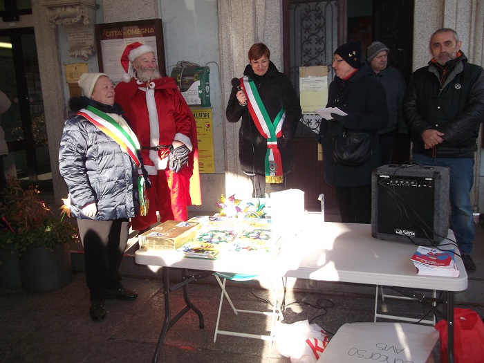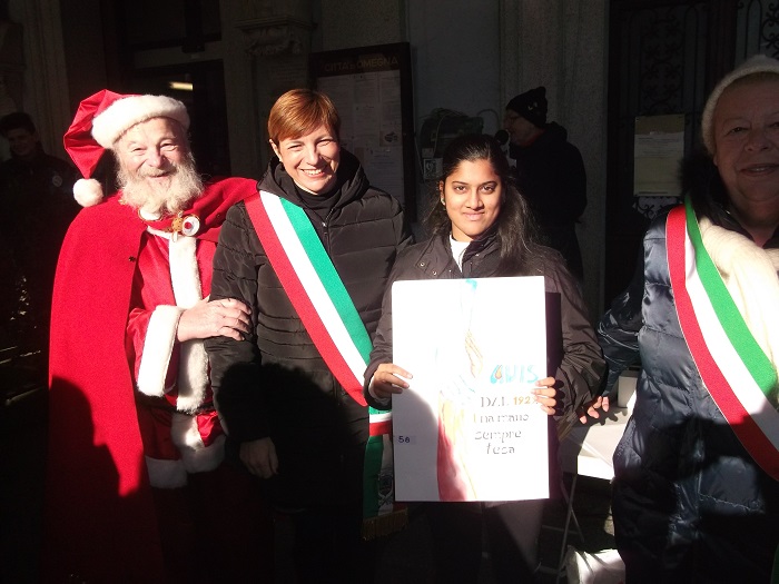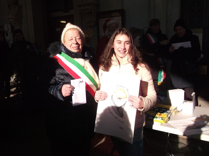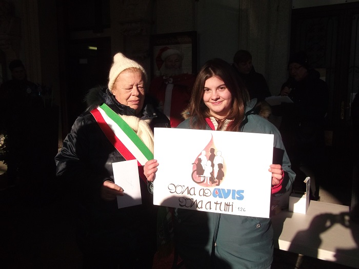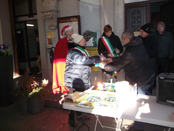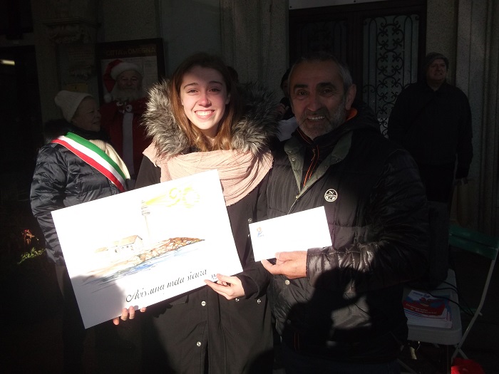 OMEGNA- 21-12-2017- Una cerimonia semplice ma significativa. Questa mattina sotto i portici del Municipio di Omegna si è svolta la premiazione dei vincitori delle 5 borse di studio "G. Puppieni" promossa dall'Avis di Omegna e che ha visto la partecipazione di quasi 200 studenti di tre scuole: l'IIS Dalla Chiesa Spinelli sezione socio sanitario, il Liceo Artistico Gobetti e VCO Formazione panificatori e pasticceri. "Per noi- ha spiegato il presidente della sezione Avis Tiziana Tacchini- hanno vinto tutti ed è importante la partecipazione di tutti questi ragazzi al nostro concorso che vuole ricordare il nostro primo, e storico, Presdiente Pino Puppieni". Ha vinto Sakshi Spezia che si è aggiudicata una borsa di studio del valore di 200 euro. Secondo posto, e borsa di studio di 100 euro, per Stella Priolo. Terza Alisea Tonna che si è aggiudicata una borsa di studio del valore di 75 euro e quarti, ex aequo, Davide Lupi e Azzurra Ottoni con un premio di 50 euro. Alla cerimonia erano presenti anche il Presidente Provinciale dell'Avis Enzo Tonna, l'Assessore alla cultura del Comune di Omegna Sabrina Proserpio e il Vice Sindaco di Gravellona Toce Anna Di Titta. I cinque disegni vincitori del concorso compariranno sul calendario 2019 dell'Avis. "Visto che ricorre il novamtesimo anniversario- ha precisato Tiziana Tacchini- chiederò che i disegni vengano pubblicati anche sulla nostra rivista nazionale". Presente alla cerimonia anche Babbo Natale che, reduce dalla visita all'asilo nido ha salutato gli studenti rivolgendo loro parole cariche di significato: "In tanti mi state chiedendo la pace nel Mondo. Purtroppo non posso esaudire questo desiderio ma vi posso garantire che tutti noi insieme possiamo contribuire affinchè questo desiderio si avveri".