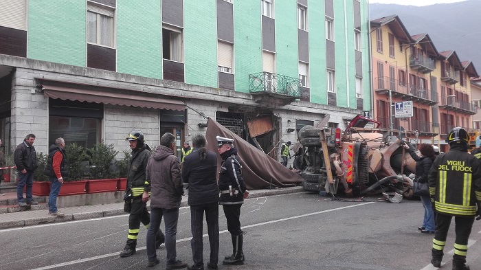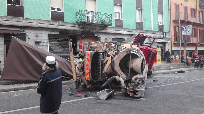 dalla cabina e trasportato all'Opsedale castelli di Verbania l'autista della betoniera che si è schiantata contro il Bar Milano a Gravellona. L'autista era cosciente e dalle prime notizie pare si sia fratturato una gamba. Nell'incidente è stata coinvolta anche un'automobile.