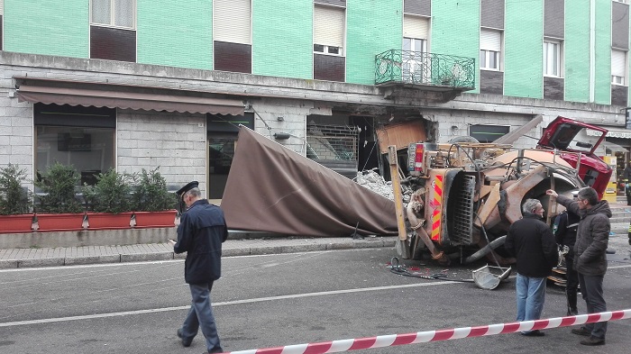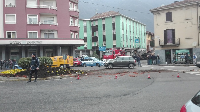 GRAVELLONA TOCE- 25-01-2018- E' stato un mezzogiorno di paura quello che ha vissuto Gravellona. Lo Spettacolare e rocambolesco incidente, avvenuto alle ore 12.20, poteva avere effetti tragici. La betoniera proveniente da corso Milano ha investito una Polo, alla cui guida c'era una signora rimasta fortunatamente illesa che proveniva da corso Roma, per poi andare a terminare la sua corsa contro le vetrine del Bar Milano. Vista l'ora in cui è avvenuto l'incidente, è stata una fortuna, che nessuno stesse camminando sul marciapiede in quel momento. Se solo fosse successo qualche minuto più tardi, come hanno sottolineto diverse persone, in quel tratto di Corso Sempione si sarebbero potuti trovare gli studenti che uscivano da scuola.