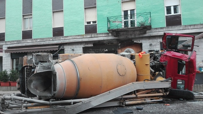Sul luogo dell’incidente sono subito accorsi le forze dell’ordine locale, della Polizia, i volontari dei vigili del fuoco e del 118. Secondo alcune testimonianze, la betoniera non avrebbe rispettato la precedenza della piccola utilitaria Volkswagen, scaraventandola dopo una serie di piroette sopra lo spartitraffico adiacente a una decina di metri dalla rotonda e il grosso automezzo si è schiantato devastandolo, contro il locale del bar Milano in corso Sempione. Anche una signora che si trovava a pochi passi dal bar Milano, è rimasta lievemente ferita al momento dello schianto della betoniera contro la palazzina. Dopo le prime verifiche sulla stabilità della palazzina i tecnici e le autorità preposte, ai fini di cautelare le persone, hanno deciso di far evacuare le famiglie.
