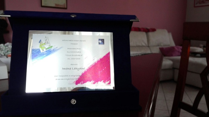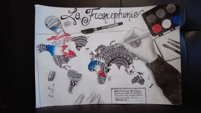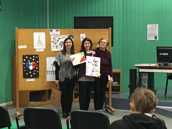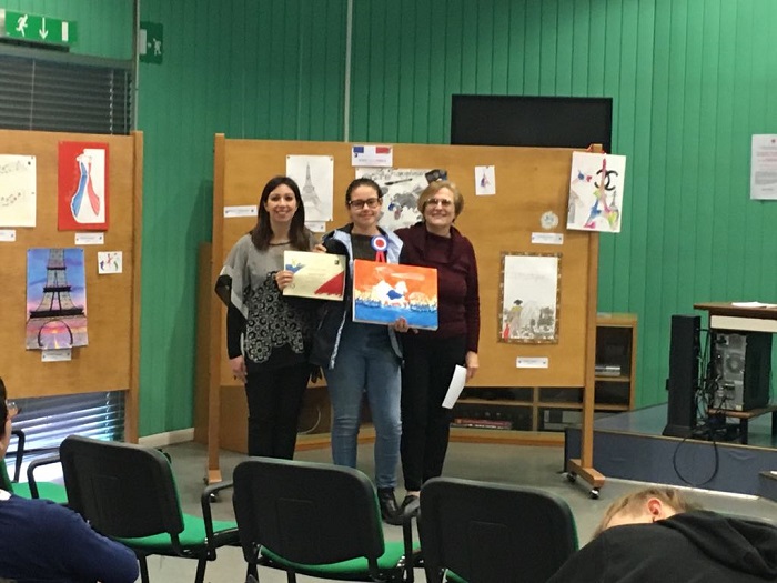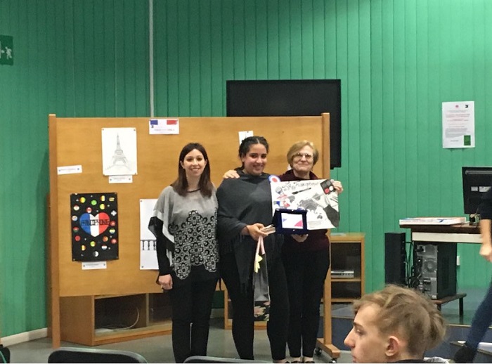 La settimana della francofonia è iniziata con l’esposizione all’ingresso dell’Istituto degli elaborati realizzati dagli studenti nell’ambito del concorso " Tous ensemble" che ha richiesto agli alunni la realizzazione di un lavoro artistico avente per tema quello della francofonia. Gli elaborati sono stati valutati da una commissione composta dal Dirigente Scolastico Rosa Angela Bolognini, la DSGA Adriana Cosentino, dalla stessa Carmela Modaffari e dalle docenti di Storia dell’arte Prof.ssa Ilaria Lissandrelli e Prof.ssa Immacolata Battista. I vincitori del concorso sono stati premiati lunedì 26 marzo. Il primo premio è stato assegnato all’alunna Imane Lahyaoui (classe II AFM), il secondo premio all’alunna Letizia Leopaldi (classe V A MODA) e il terzo premio all’alunna Alessandra Mariotti (classe V A SOS) .