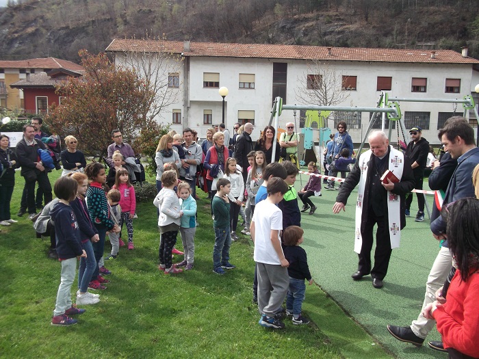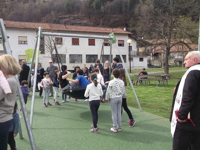 oggi pomeriggio il parco giochi condiviso di Bagnella, fortemente voluto dall'associazione Amici di Bagnella e che ha visto molti altri enti collaborare per la riuscita del progetto. Il Comune di Omegna, i Lions di Omegna, Babeka, la UILDM di Omegna, l'Associazione Kenzio Bellotti, Cipir Utility, Omegna Social Network, Ohana una vita a colori e il Gruppo signore Ricamo di Bagnella hanno reso possibile la realizzazione del parco giochi che prevede anche un gioco utilizzabile dai bambini disabili. Una cerimonia, quella di oggi, officiata da don Domenico Piatti, parroco di Bagnella, che ha voluto anche ricordare due figure emblematiche per la comunità bagnellese e alle quali è intitolata l'area sulla quale è sorto il parco giochi: Francesca Maria Masnaghetti e Tiziano Beltrami. "Da lassù- queste le sue parole- veglieranno su di noi e saranno sicuramente felici di questo parco giochi". Presente anche il Sindaco di Omegna, Paolo Marchioni, che ha salutato con entusiasmo la realizzazione del parco giochi: "Siamo di fronte ad una bellissima operazione realizzata in sinergia tra pubblico e privato. In meno di un anno i lavori sono stati realizzati e oggi il parco giochi è utilizzabile dai bambini e anche dalle famiglie". Felice, e non poteva essere altrimenti, Marco Tagliaferri, presidente dell'associazione Amici di Bagnella: "Siamo soddisfatti ed era quello che volevamo. Un parco giochi nel nostro quartiere che potrà essere utilizzato dai bambini. Un grazie a chi ci ha aiutato ma permettetemi di ringraziare, in particolare, Luca Francisco, Marida Pianta, Giorgio Soldani e Ivan Rainoldi".