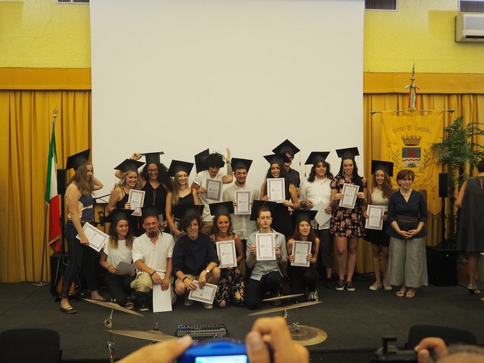 OMEGNA-14-07-2018- Serata di festa all’auditorium del Forum dove nella serata di ieri, mercoledì 11 luglio, i riflettori erano puntati sui neo-diplomati presso il Liceo “Piero Gobetti” di Omegna. I ragazzi, che hanno da poco concluso gli esami di stato, hanno ricevuto in tale occasione un simbolico diploma in attesa dell’arrivo di quelli ufficiali ed hanno avuto modo di godere dei calorosi applausi del gremito pubblico costituito da genitori, parenti, curiosi e professori concedendo un momento di soddisfazione e gloria per gli oramai ex liceali giunti al termine di un faticoso percorso quinquennale e che li ha condotti verso la maturità. Chiamati in ordine alfabetico e suddivisi per classi, i maturati presenti si sono riuniti sul palco all’ordine della professoressa Michela Cane e dell’assessore alla cultura cittadino Sabrina Proserpio, che hanno condotto la tradizionale serata organizzata dall’associazione Ex Allievi Liceo Piero Gobetti, alla presenza anche del suo presidente Mauro Martinetti e della dirigente scolastica dell’istituto Michela Maulini. In seguito alla consegna dei diplomi alle classi quinte dei tre indirizzi del liceo, gli studenti che hanno conseguito i migliori risultati all’esame sono stati premiati con borse di studio sponsorizzate da terzi legati alla causa dell’associazione. Per il liceo scientifico, sono state consegnate a Edoardo Casotti, Aurora Petagine ed Emma Zanella; per il liceo artistico, i meritevoli sono stati Anita Ariola, Maia Balzanelli, Rebecca Cerutti e Alessia Losa; infine, per il liceo musicale, le borse di studio sono state assegnate a Gea Papaleo e Tommaso Perissinotto. Il tradizionale lancio dei cappelli da parte dei neo-diplomati ha chiuso nel nome dell’entusiasmo l’evento nel corso del quale si sono inoltre susseguiti momenti di musica a cura di studenti dell’indirizzo musicale dell’istituto.