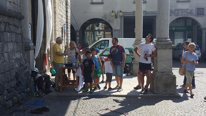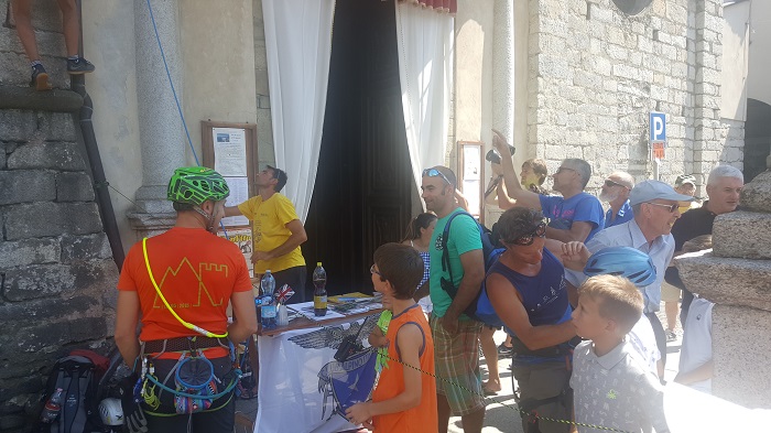 OMEGNA-20-08-2018- Si è tenuta ieri pomeriggio, domenica 19 agosto, la scalata del campanile della chiesa di S. Ambrogio mentre la vicina piazza Beltrami si stava preparando all’inaugurazione ufficiale. Gli appassionati scalatori hanno potuto partecipare ad un evento che, giunto alla sua quarta edizione, si conferma essere una tradizione della prima domenica dei festeggiamenti di S. Vito. "L’evento è nato quattro anni fa dalla collaborazione del Cai con il parroco cittadino ed il Comitato di S. Vito" ha spiegato Paolo Selmo, vicepresidente della sezione di Omegna del Club Alpino. Salendo il campanile della Collegiata per circa 30 metri, fino allo spazio dove si trovano le campane, "tutti, adulti e bambini, possono avvicinarsi al mondo dell’arrampicata" ha concluso Selmo. Prima dell'inizio della serie di arrampicate, don Gian Mario Lanfranchini ha richiamato l’attenzione proponendo un momento di preghiera per gli alpinisti e poi un forte applauso per il Cai omegnese che si occupa dell’evento. Molti altri gli applausi dei presenti rivolti ai più bravi che sono riusciti a raggiungere la vetta nel corso del pomeriggio. (E.C.)