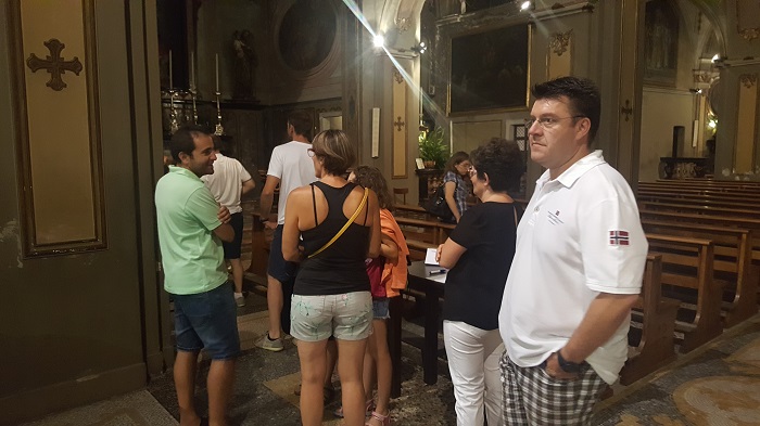 OMEGNA-23-08-2018- “Affascinante” è stata la recensione di molti di coloro che, nella serata di ieri, mercoledì 22 agosto, hanno avuto aderito alla salita in notturna sul campanile della Collegiata di Omegna. “Quasi cento sono stati i partecipanti all’iniziativa” riconosce Benedetta De Gaudenzi del gruppo di San Vito Giovani; ha poi proseguito: “visto l’interesse dimostrato, abbiamo in mente di riproporre la serata” e per rimanere aggiornati a tal proposito si consiglia di controllare la loro pagina Facebook. A contorno di questa iniziativa, numerose “street band” di giovani del nostro territorio hanno trovato spazio per potersi esibire e dimostrare il proprio valore artistico. Meno eventi ma una responsabilità maggiore, quest’anno, per il gruppo di ragazzi interessati a dare un taglio “giovane” ai festeggiamenti, ovvero quella di animare la nuova piazza Beltrami la cui inaugurazione ufficiale si è tenuta la scorsa domenica 19 agosto alla presenza delle autorità. “L’inaugurazione della piazza sarà per noi il prossimo venerdì 24 – afferma Gregorio De Gaudenzi di San Vito Giovani – con il tributo ai Linkin Park, un gruppo musicale che crediamo possa unire le generazioni e possa quindi essere gradito ai più”. A metà dei dieci giorni di festeggiamenti, è possibile anche fare dei bilanci: “La festa sta andando bene – continua De Gaudenzi – ed importante è il risultato raggiunto dalla ‘Cittadella del Gusto’, un’area gastronomica che offre qualcosa in più rispetto ai tradizionali piatti delle bancarelle”. La “Cittadella del Gusto” è infatti nata grazie anche all’interesse dei ragazzi di San Vito Giovani che hanno creduto nel progetto e collaborano fattivamente ogni sera affinché tutto possa andare per il meglio, insieme ai volontari delle associazioni che si alternano di sera in sera. (E.C.)