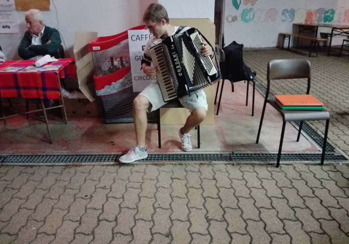Finita la funzione religiosa, la serata è proseguita nel cortile dell’oratorio “Piergiorgio Frassati”, lì c’erano dolci, lo stand della birra e le piacevolissime note della fisarmonica di “Giulio e la sua fisarmonica”.