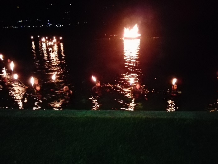 Lì un intenso momento di preghiera con don Giuliano, i saluti del sindaco di Pettenasco Franco Sartirani, il grande falò sul lago e la presenza dei sub del Club Sommozzatori di Borgomanero.