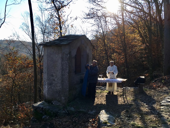 NONIO-19-11-2018 - Dopo il rinvio a causa delle condizioni meteo, sabato 17 novembre si è svolta l’inaugurazione della cappelletta rurale dedicata a San Carlo Borromeo al confine tra comuni di Cesara e Nonio. Durante la cerimonia di benedizione officiata da don Rino Geddo si sono ricordate le gesta di San Carlo e si sono ringraziati i volontari: Giromini Angelo, Forni Marco, Bianchi Denis, Matella Alberto, Ardizzi Ermes e Troisi Fabrizio che hanno lavorato nella ristrutturazione della cappelletta mentre il quadro ad olio raffigurante il santo è stato dipinto da Enrico Faraglia. È proprio quest’ultimo che ha preso la parola a conclusione della cerimonia ricordando come il gruppo “amici della montagna” sia aperto a tutti e disponibile a collaborare con tutti in modo tale da poter abbellire e migliorare il borgo e le sue peculiarità. Momento molto toccante anche il breve ricordo a Marino Gallarotti con la posa di una targa in serpentino in sua memoria. I festeggiamenti sono continuati con un piccolo rinfresco conviviale e qualche brano accompagnato dalla fisarmonica.