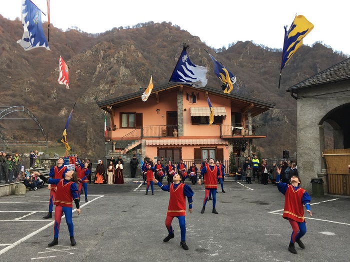 LUZZOGNO-03-12-2018 - Grande successo per la nona edizione dei mercatini di Natale in Valle Strona. Domenica 2 dicembre a Luzzogno tanti gli espositori che hanno rallegrato la frazione con i loro prodotti artigianali o artistici fin dalla mattinata, nel frattempo da Forno e da Germagno partivano due gruppi di camminatori grazie alla collaborazione con il CAI di Omegna con arrivo a Luzzogno per poi salire alla statua della Madonna di Medjugorie, in località Corblon. Il momento clou della giornata di festa però è stato al pomeriggio quando dapprima l’arrivo di Babbo Natale con i dolcetti per tutti e poi le principesse del ghiaccio e il famoso protagonista del cartone animato Frozen hanno animato la piazza, in attesa del gruppo di sbandieratori di Ferno. Il suono dei tamburi è stato il segnale dell’inizio della sfilata degli sbandieratori che hanno dato vita, in seguito, ad una performance molto articolata con lanci di bandiera incrociate, schema di formazione molto articolate e con difficoltà crescente si sono esibiti sia le giovani leve sia i ragazzi più grandi dimostrando davvero grande abilità. Non è mancato il momento di visita al presepe realizzato da Giacomo Rinaldi con semi, gusci e cortecce che ogni anno aumenta di volume ambientando la storia della nascita di Gesù nella sua amata valle. Quest’anno al tradizionale presepe, Giacomo Rinaldi, ha accostato una nuova tipologia di presepe realizzata solo con legni, dalle svariate forme, raccolti in natura e dal particolare significato: l’essenza della vita dopo la morte. Ecco allora che nella grotta abbandonata, si rifugiano gli animali segno di una nuova vita più semplice, più umile e più vera.