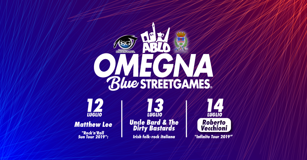 Omegna Blue Streetgames potrà contare su un prestigioso parterre di ospiti musicali di fama internazionale (nelle passate edizioni si sono alternati sul palco di Omegna Joe Bastianich, Enrico Ruggeri, Rocco Papaleo, Eugenio Finardi, i Musici di Guccini e molti altri). Ecco il programma artistico del 2019: