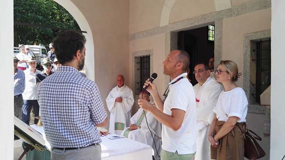 OMEGNA – 06-08-2019 -L’inaugurazione dei lavori di restauro della chiesa intitolata alla Madonna della Neve ha attirato un gran numero di cittadini omegnesi, che hanno condiviso la gioia per un tesoro d’arte e di fede ritrovato. I presenti si sono subito immersi in un clima di festa, con la messa presieduta da Mons. Francesco Ravinale, vescovo emerito di Asti, che con la sua testimonianza di fede vissuta ha scaldato il cuore di tutti. Al termine della sentita e partecipata celebrazione, il parroco don Gian Mario Lanfranchini ha rivolto il suo grazie all’amministrazione comunale della città di Omegna e ai comuni della Valle Strona, rammentando che il ponte antico è uno tra primi progetti, a cui seguiranno altri passi, all’interno di un percorso da Omegna alla Valle. Il parroco ha poi tributato entusiastiche lodi anche alla Fondazione Cariplo di Milano che ha dato fiducia al progetto, alle varie associazioni che si sono prodigate per la sua realizzazione, alla Pro Loco, alla Protezione Civile, ai Lions, alla famiglia Ruschetti e ai progettisti - gli architetti Andrea Baldioli e Gianfranco Ciuffo. E proprio i progettisti, con parole cariche di emozione, hanno evidenziato che: “un’architettura non è tale se non è vissuta: quindi il fatto di vedere oggi una platea così numerosa, rende veramente il progetto completo, rende vero uno spazio che quando è vuoto non è così significativo come quando c’è una presenza umana. Il cammino è ancora lungo, dato che dobbiamo realizzare ancora un percorso a sud e uno verso la Valle”. A margine dell’inaugurazione Mons. Ravinale ha incoronato la statua della Beata Vergine Maria, regina di misericordia e speranza del mondo, impartendo poi la benedizione del Signore a tutti i presenti.
