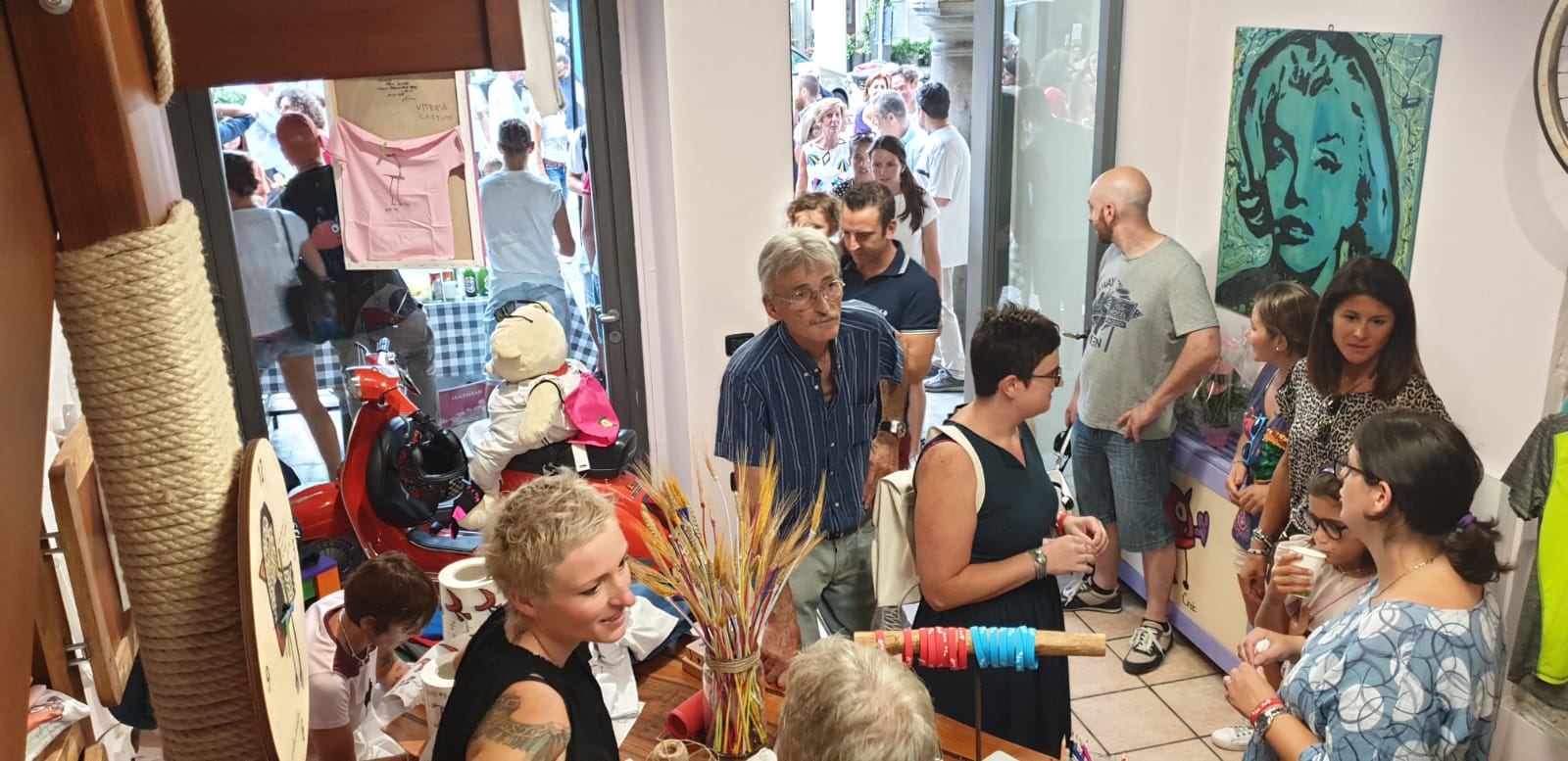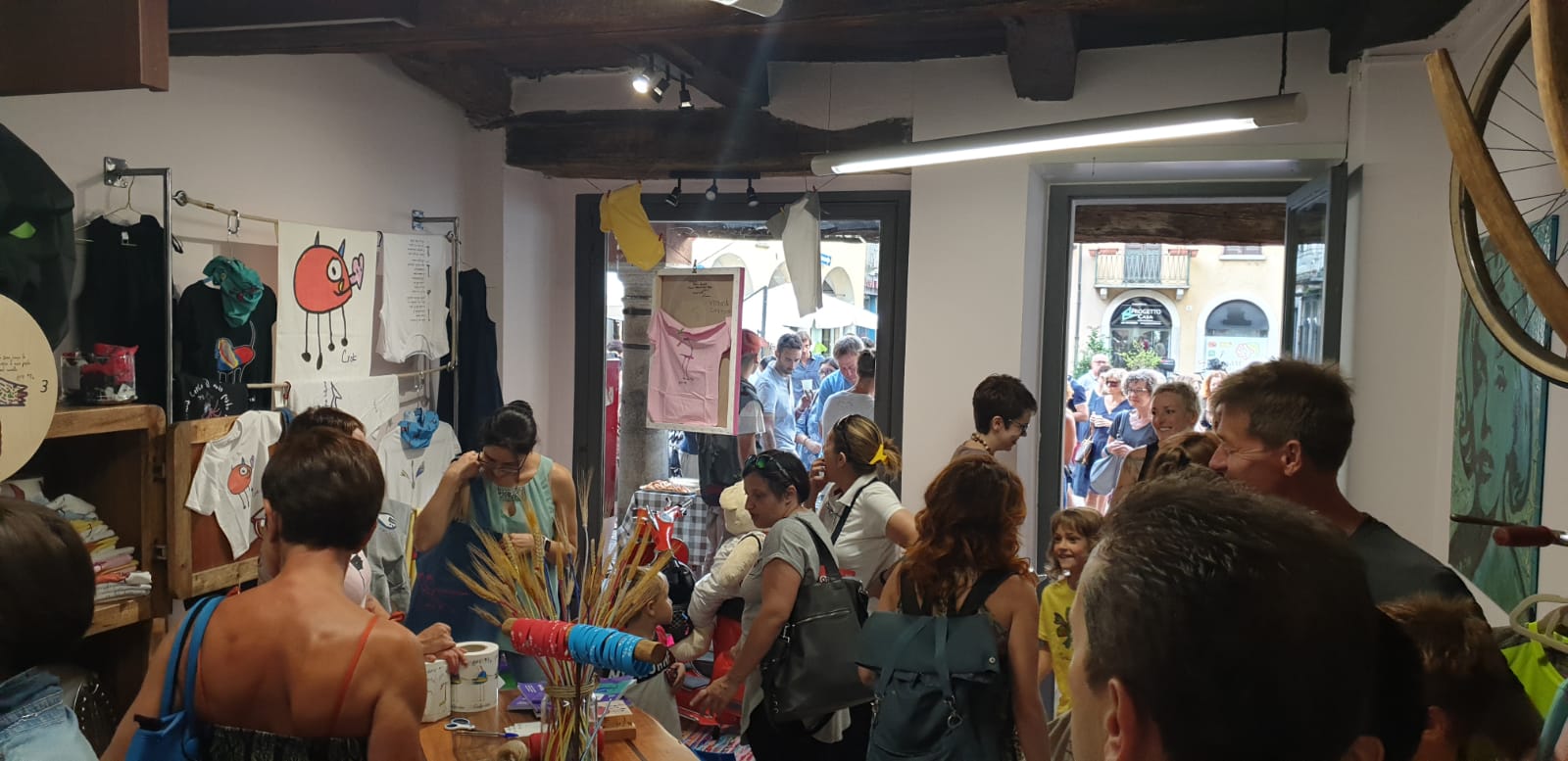ad Omegna "il bugigattolo" il punto vendita di CreVi, creazioni di Vittoria. Vittoria vive sul lago d’Orta con un fratellino più piccolo e la sua mamma, Alessandra. Secondo il linguaggio medico la nostra piccola artista soffre di disturbi dello spettro autistico, ma i colori e i tratti dentro di lei viaggiano sempre in armonia. Per questo motivo piacciono a tutti. Vittoria ha cominciato a disegnare poco meno di tre anni fa, prediligendo la figura degli uccellini, animali liberi e pieni di colori ed energia che lei riesce ad esprimere molto bene. Sono così nati Querzel, Barbiglio, Gallo di Toscana, uccellino arcobaleno, Gallo di pollaio, Zampe lunghe, Ciuffo rosso e Zigo Zago. Disegni pieni di colori e vita, che hanno dapprima invaso l'auto di Alessandra, e che attraverso una frase pronunciata a sua cugina, Monica Bordes, "Ho la macchina piena di disegni di Vittoria, uccellini ovunque". Ha acceso l'idea di far spiccare il volo a questi uccellini attraverso delle t-shirt, un'iniziativa ottima, per raccogliere fondi da destinare alle cure di Vittoria con il nome: "CreVi", Creazioni di Vittoria. All'inaugurazione erano presenti anche l'Alpinista Cristina Piolini che con il suo progetto Eighthousand, porterà il logo Crevi sulla cima del Manaslu, 8.163 mt e se l'impresa riuscirà sarà la prima donna a scenderlo con gli Sci. Sci nati dalle mani di Fabrizio Fregonara, socio fondatore della Whitelandski di Alagna, che per l'occasione ha creato degli sci interamente logato CreVi. La spedizione prenderà il via il 30 agosto prossimo.