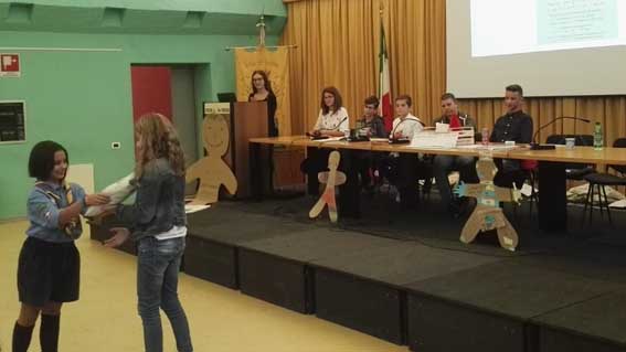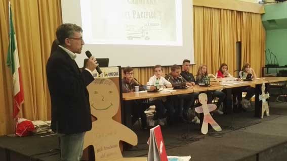 OMEGNA – 14-10-2019 - Gianni Rodari ha creduto profondamente nella carica liberatoria della parola, nel valore dell’immaginazione e nel ruolo educativo dell’utopia. E una miriade di riflessioni fantastiche è emersa anche domenica 13 ottobre nell’auditorium Teresio Piazza al Forum, alla premiazione degli “Scrittori in erba”, un concorso per giovani autori di racconti brevi e libri d’artista. La seconda edizione, promossa dall’associazione Dragolago in collaborazione con Mastronauta, il Parco della Fantasia Gianni Rodari e il Comune di Omegna, è stata realizzata grazie al sostegno 8X1000 della Chiesa Valdese. Si è rivelato così l’importantissimo ruolo della creatività all’interno del processo educativo, perché come ha ricordato l’assessore alla cultura Sara Rubinelli “Il concorso offre un bellissimo esercizio dove si impara –in collaborazione con gli insegnanti- a lavorare per il senso critico delle cose, che oggi è una competenza fondamentale”. Così in questo pomeriggio colorato e ricco di emozioni, è stato proiettato il video dei pacifici (il pacifico non è altro che una proiezione di sé, un messaggio di pace libero di vagare per il mondo, raggiungendo anche le zone dove è necessario portare speranza e solidarietà, soprattutto ai bambini dai bambini). Al concorso sono pervenute oltre settanta candidature, sottoposte poi alla giuria composta dal CCR (consiglio comunale dei ragazzi di Omegna), che durante l’estate ha letto con pazienza e impegno i racconti, designando poi i criteri valutativi per decretare i vincitori. Ed ecco i loro nomi. Per la scuola secondaria di primo grado (categoria teen-ager): primo classificato “Nasira, la bambina della pace” di Sara Bochicchio, Agata Marangiolo, Isabel Marzano, Alessandra Miglio e Ilaria Vitelli della 1 B dell’I.C. “Rodari” di Crusinallo; al secondo posto si è piazzato “Il mercante degli sconti di pace” di Tommaso Brusa, Ahmed Goumri, Christian Maulini e Marco Bessero Belti della 2 E dell’I.C. “F.M. Beltrani” di Omegna; infine, sul terzo gradino del podio è salito “Il giornalista delle buone notizie” di Andrea Cesarini, Giacomo Grasso, Ayman Bendoumia e Ylyass Ennadhify della 2 E dell’I.C. “F.M. Beltrami” di Omegna; per la scuola primaria (categoria primavera) si è aggiudicato il primo posto “Fiori di nuvola” degli alunni della classe 5 dell’I.C. Vergante di Nebbiuno; secondo classificato “Occorre riflettere” di Matilde Cuscusa della classe 5 dell’I.C. “G. Ferrari” di Cavaglio D’Agogna”, mentre il terzo posto se lo è aggiudicato “Pacifico” di Emma Garavaglia della classe 4 dell’I.C. Vergante di Nebbiuno. Di seguito riportiamo anche i vincitori della categoria “Libri d’artista”: 1. “Un oceano di Pacifici (classe 2 G della scuola secondaria di primo grado – I.C. Borgomanero); 2. “Babak il soldato (classe 2 B della scuola secondaria di primo grado di Lesa – I.C. Vergante); 3. “Piccole storie di pace” (classe 2 D della scuola secondaria di primo grado – I.C. Pascoli di Gozzano); 4. “Un libro per la pace” (classe 2 B della scuola secondaria di I grado di Lesa – I.C. Vergante).