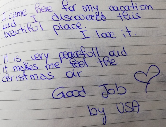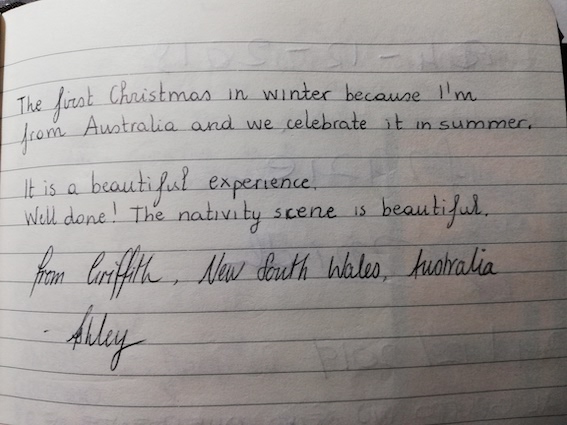 Abbracciati da un bellissimo panorama, coccolati da un soave silenzio e deliziati dal Presepe che semplicemente era lì per regalarsi agli occhi e ai cuori in cerca del bello e del vero, i visitatori hanno messo nero su bianco pensieri appassionati, espressione di quel rapporto d’amicizia che sempre si viene a creare col Presepe.