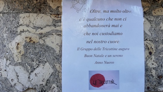 Questa bella tradizione si rinnova dal 2015 e ogni volta porta fra le vie del piccolo borgo un’atmosfera natalizia molto particolare; per il realizzare Natale 2020 hanno sferruzzato una decina volontarie e dalle loro mani d’oro sono nati pacchetti, pacchettini e pacchettoni, ghirlande, fiocchetti, campanelle e altri simboli del Natale creati ai ferri e all’uncinetto.