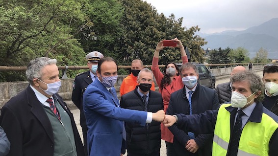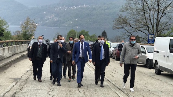 OMEGNA - 28-04-2021 -- Nuova visita ad Omegna del governatore Alberto Cirio. Come aveva annunciato pochi mesi fa, aveva promesso per il 28 aprile la consegna del cantiere della Galleria della Verta ad Anas, e così è stato. La galleria è chiusa da tre anni.